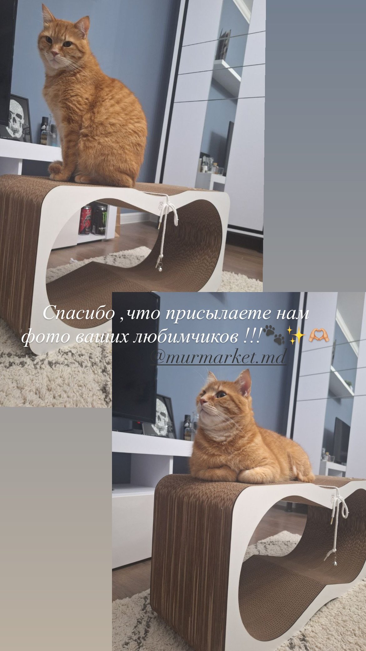 Изогнутая форма, тщательно подобранные материалы и лаконичный дизайн позволяют кошкам точить когти, играть, отдыхать и расслабляться естественным образом — так, как это происходит в природе. В то же время каждый продукт MurMarket задуман как дизайнерский объект, гармонично вписывающийся в современные интерьеры. Мы хотим, чтобы нашу продукцию ценили не только кошки, но и люди, которые выбирают эстетику, качество и долговечность.