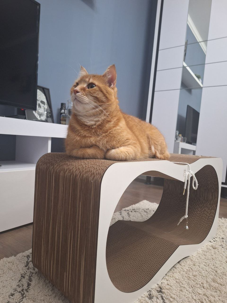 Mobilier eco pentru pisici, realizat din carton natural, perfect pentru ascuțirea ghearelor, odihnă și joacă. Design minimalist care se integrează armonios în casa ta.